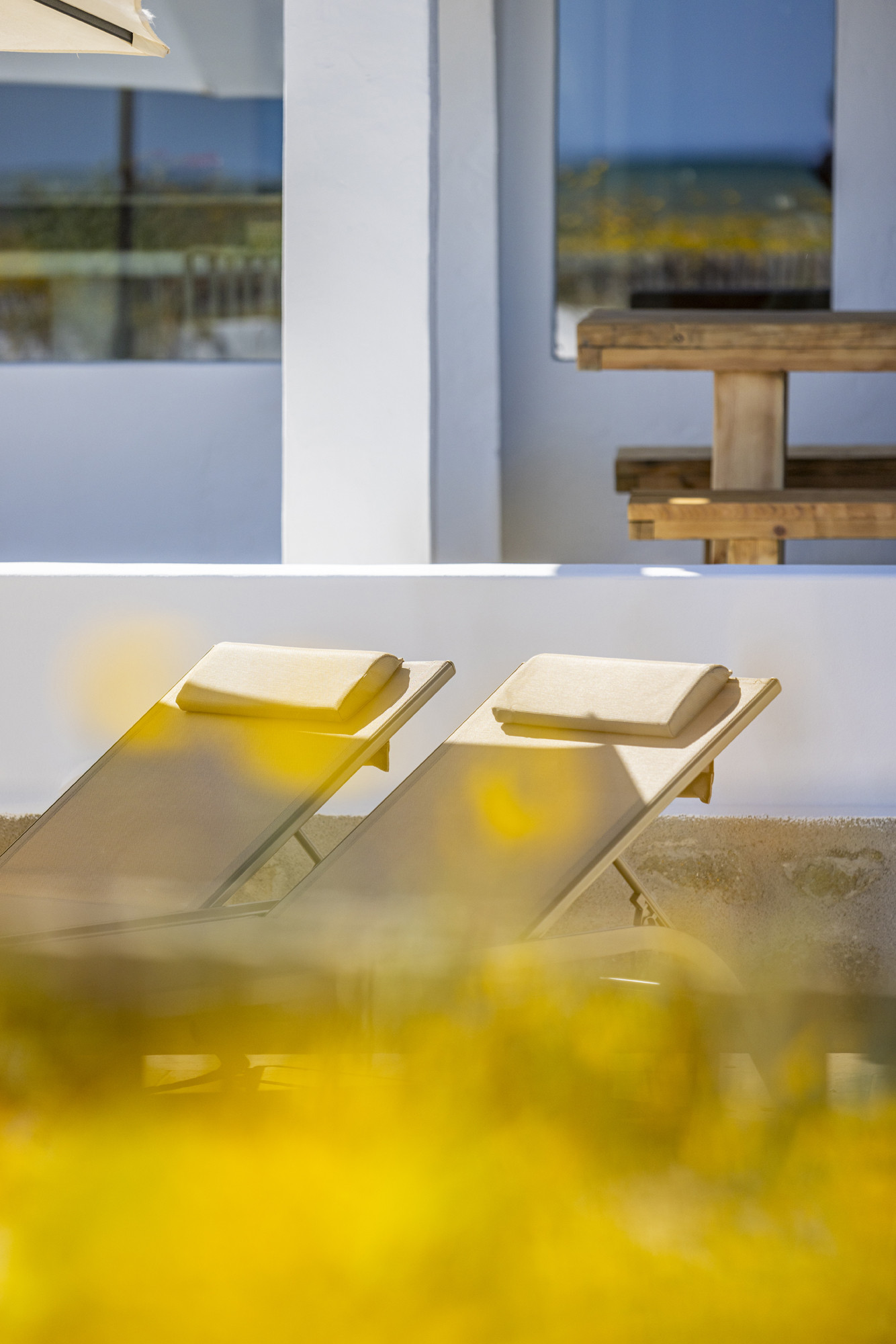 grande terrasse au pied de la plage avec vue sur la mer